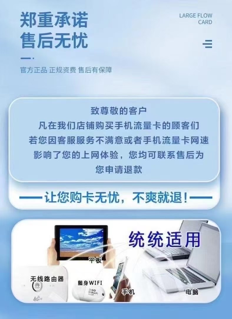 正文摘要:需要實名 0月租 永久套餐,絕無套路。 可開熱點,無通話功能。 全國各地通用(不好用隨時退) 需要影視軟件包給,免費給。 優(yōu)點:4G 5G高速網(wǎng)速流量不限速!通用流量,任何軟件都能使用,流量30天有效,無 ... |