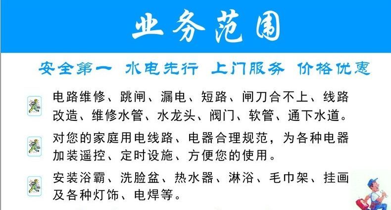 室內(nèi)/店面/商用場所 水電設(shè)計(jì)-布線 -整改-安裝! 本人專業(yè)承接室內(nèi)水電裝修!自己親自動手!帶團(tuán)隊(duì)! 1.專注套房、店面、工廠、別墅水電設(shè)計(jì) 2.專業(yè)水準(zhǔn) 精心為您設(shè)計(jì)合理線路 3.水電精裝 簡裝 公裝的改造、安裝、維護(hù) 從墻壁開孔——水電開槽——監(jiān)控工程——燈具——各種開關(guān)——布線——水管 [業(yè)務(wù)范圍:全潮州(市區(qū)+周邊鄉(xiāng)鎮(zhèn)+潮安區(qū)) 承接:各大小區(qū)、自建房、旅管、工廠、學(xué)校、單位等 |